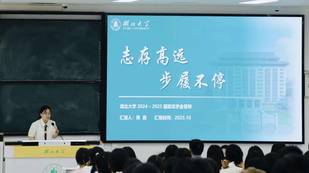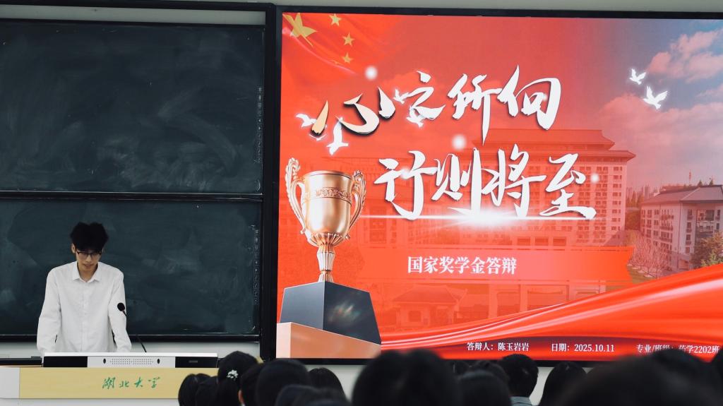 经过前期个人申请和学院初审,共有5名来自2022级、2023级各专业的优秀本科生入围本次公开汇报答辩5分钟陈述时间,候选人们依次上台,从思想表现、学业成绩、科研创新、社会实践、365英国与志愿服务等多个维度,全面而生动地展示了自身在大学期间的成长与收获。